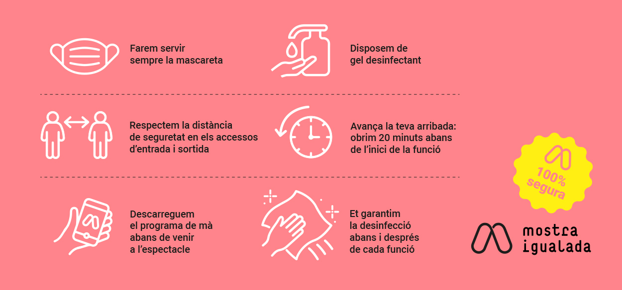 - Si penseu que podeu tenir símptomes de la Covid-19 o heu estat en contacte amb algú diagnosticat del virus, NO HEU DE VENIR A L’ESPECTACLE.