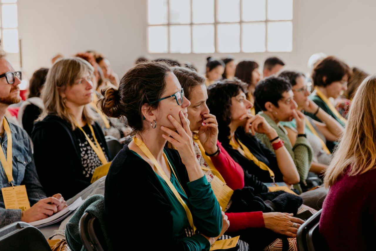 I acabem, last but not least, amb una línia tan primordial com la de la perspectiva de gènere, que tan treballada tenen a l’Ajuntament de Berga. Puja a l’escenari la seva tècnica de Cultura, Sara Simon, que comença la seva presentació reconeixent Sara Ramírez i Janira Vilana, el seu equip de treball. Donar visibilitat a les companyes també és sororitat. Berga, explica Simon, “vol anar un pas més enllà de la programació paritària”, i apostar per un teatre més feminista a través de debats postfunció (com el que es fa fer de l’obra Amors pel 25-N), d’un servei de ludoteca al teatre (que vol fomentar l’accés als espectacles entre les qui fan habitualment les tasques de cura) o de tallers d’igualtat per al personal del teatre, que n’està “molt agraït”. Una altra eina que han aplicat és el Punt Lila quotidià: tenim el costum de trobar-ne en festes o en espais d’oci nocturn, però Berga ha decidit instal·lar-ne un al vestíbul del teatre, on, més enllà de tenir-hi marxandatge, s’hi poden fer consultes i obtenir informació. La música i la dansa del duo de Transmissions entren en acció, i la presentació s’acaba. Quan Simon baixa de l’escenari, Guille Vidal-Ribas admet que li ha fet molta ràbia tallar aquest darrer parlament: “sovint les lògiques productives van en contra de la perspectiva de gènere”, lamenta.